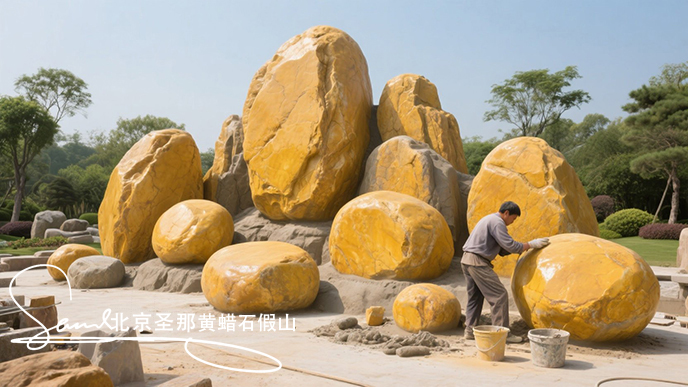 項目描述:仿真黃蠟石是一種用于替代天然黃蠟石的材料,廣泛應用于園林景觀、庭院裝飾、文化旅游場景等。仿真黃蠟石核心優勢源于“彌補天然石材的不足”以及“提升其功能”。仿真黃蠟石這一點可以從成本控制、設計兼容性、耐久性和生態性等方面得到具體體現。