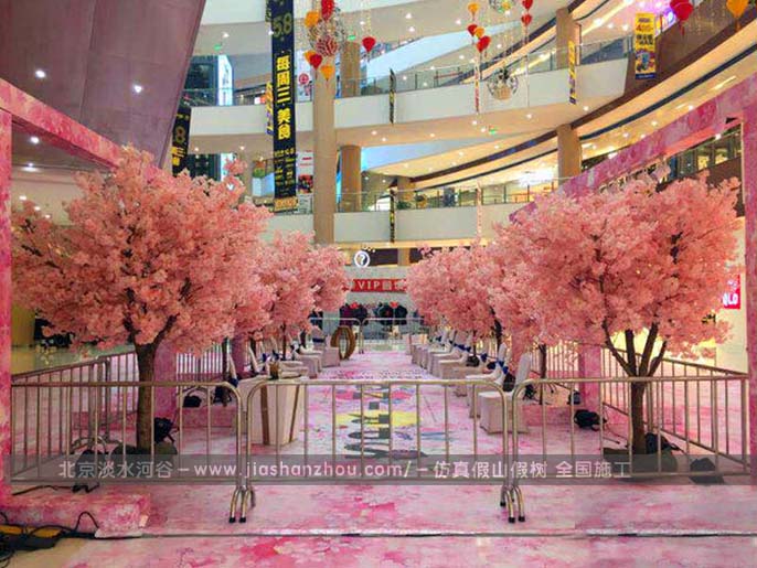 仿真杏花樹制作在室內就好比忽如一夜春風來,千樹萬樹杏花開,北京廠家制作的仿真杏花樹參考了真的桃花樹,在制作時盡量做出美的效果,在為這個客戶制作仿真杏花樹時,因為空間的限制,不能做的很大,但還要做出大樹的效果,所以制作了大樹的樹墩,在旁邊做出仿真杏花樹的樹枝效果。