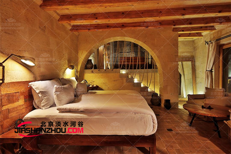 通過構(gòu)建優(yōu)雅的水上湖景,終為旅游窯洞民宿創(chuàng)建的成人童話房間。用美麗的水泥覆蓋墻壁,講述優(yōu)美的天鵝在垂柳和漂浮的睡蓮中滑行的故事。使用相同樣式的浪漫屏幕增強插圖效果,并在美麗的天空般的床罩上覆蓋您的床。您見過妙的旅游窯洞民宿設計方案嗎?