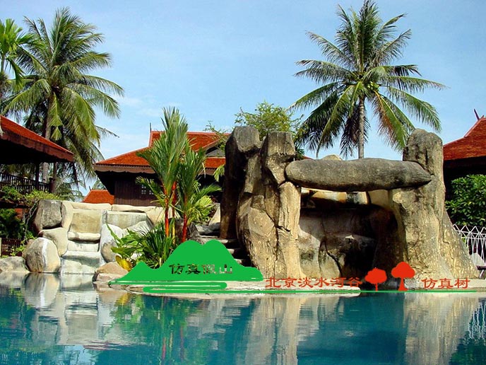 水泥假山的基礎(chǔ)。根據(jù)假山的設(shè)計(jì)要求,根據(jù)不同的山區(qū)和地基條件,對(duì)原土基礎(chǔ)、平原土夯實(shí)地基、灰土地基、平原土基礎(chǔ)、清水混凝土、碎石基礎(chǔ)、碎石混凝土基礎(chǔ)、鋼筋混凝土基礎(chǔ)、樁基礎(chǔ)等不同形式進(jìn)行了研究。地基應(yīng)采用。各類基礎(chǔ)應(yīng)按有關(guān)施工規(guī)范施工。水泥假山拉低層。拉低是在地基上鋪設(shè)低的天然巖石。拉底采用大塊平石,堅(jiān)固耐壓。不允許f 化過渡巖。假山石的高度以一層大石頭為準(zhǔn),形狀好的面應(yīng)朝外,并注意錯(cuò)縫(應(yīng)考慮縱橫向)。每次安裝一塊巖石時(shí),制動(dòng)器應(yīng)墊穩(wěn),然后再充氣。如果進(jìn)行灌漿,應(yīng)先填充石塊。如果澆筑混凝土,應(yīng)同時(shí)填充石塊。山腳處的剎車片外圍應(yīng)用砂漿或混凝土包裹嚴(yán)密。