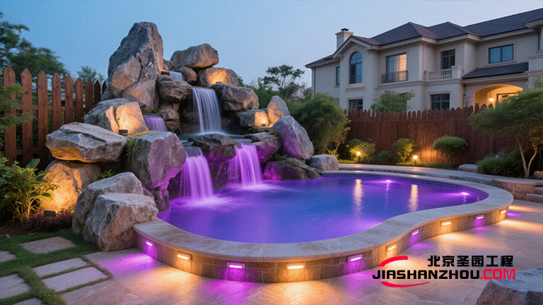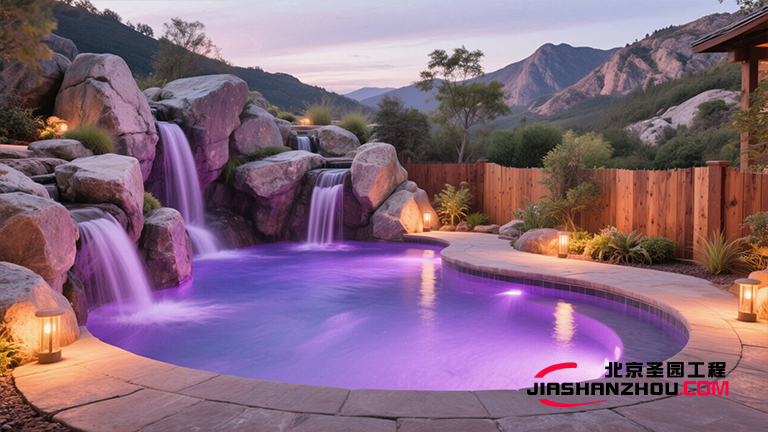 此外,石壁仿真假山游泳池、流水瀑布、駁岸透景石等設(shè)計元素,越加是讓人們在游覽仿真假山游泳池過程中步移景異,感受到無窮的變幻與驚喜。而仿真假山游泳池花架、回廊旁蜿蜒的青石小道,越加是為游客提供了一種與自然親密接觸的漫步體驗。
